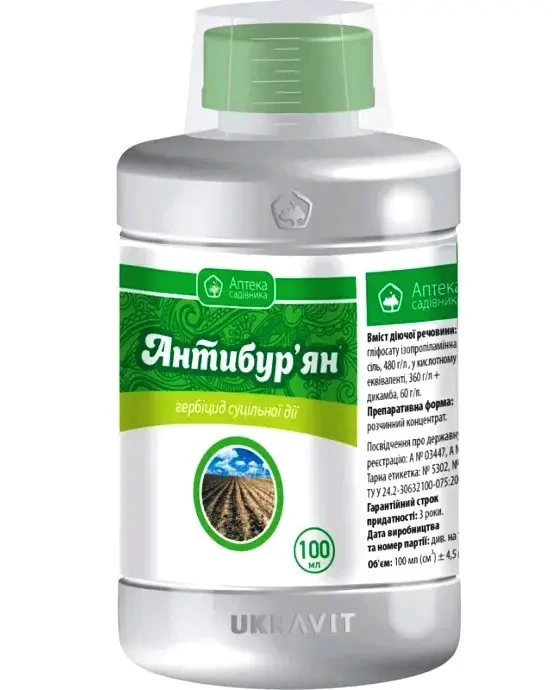 Гербіцид суцільної дії Антибур'ян 100 мл для знищення бур'янів, Ukravit